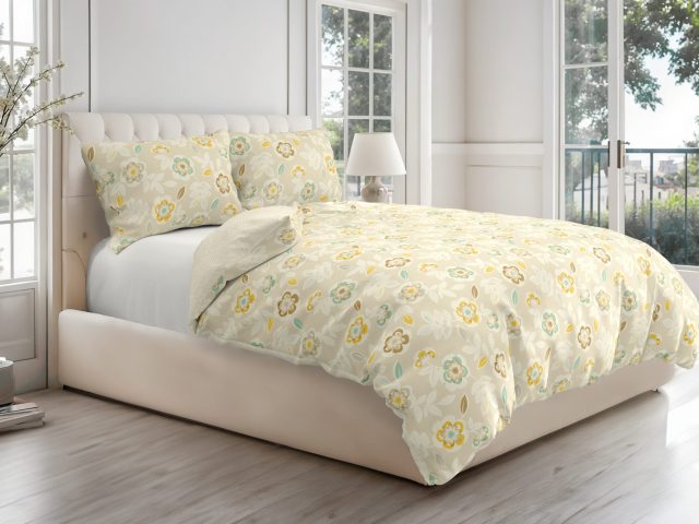 Da un sottofondo shantung sboccia un fiore prezioso.